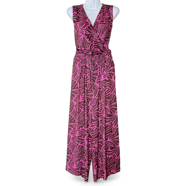 Luluoli パンツドレス  フラワー ブラウン×ピンク
